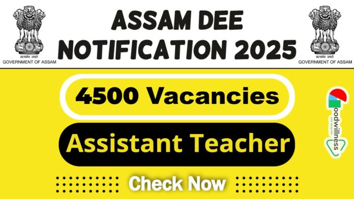 Director of Elementary Education Assam Job 2025 | DEE Assam has recruit Higher Secondary, Diploma, Degree candidates for Assistant Teacher Post | Apply Now | www.goodwillness.com