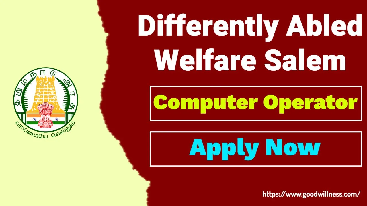 District Differently Abled Welfare Salem Job 2024 | Differently Abled Welfare has recruit B.E, B.Ed, BSC, BCA candidates for Computer Operator Post | Apply Now | www.goodwillness.com