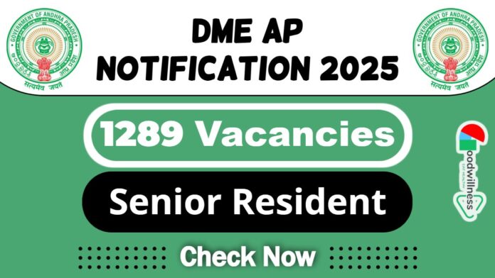DME Andhra Pradesh Job Recruitment 2025 | DME Andhra Pradesh has recruit MD/MS/MCh/DM candidates for Senior Resident Post | Apply Now | www.goodwillness.com
