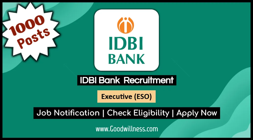 IDBI Bank Recruitment 2025 | IDBI has recruit Any Degree candidates for Executive (ESO) Post | Apply Now | www.goodwillness.com